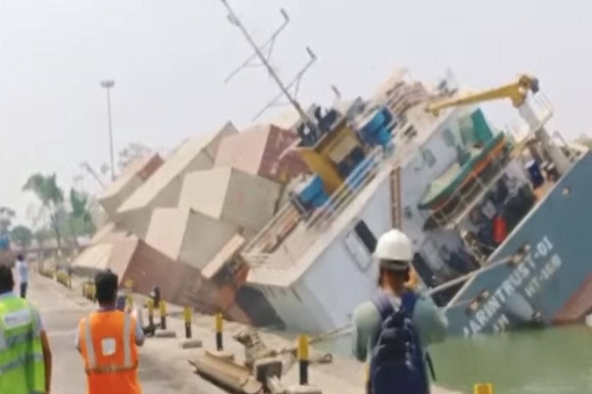Ένα μικρό πλοίο μεταφοράς εμπορευματοκιβωτίων νηολογημένο στο Μπαγκλαντές πήρε κλίση και ανατράπηκε στο λιμάνι της Καλκούτα της Ινδίας, έχοντας σαν αποτέλεσμα να τρέχει το πλήρωμα για να σώσει ότι μπορεί από τα εμπορευματοκιβώτια.