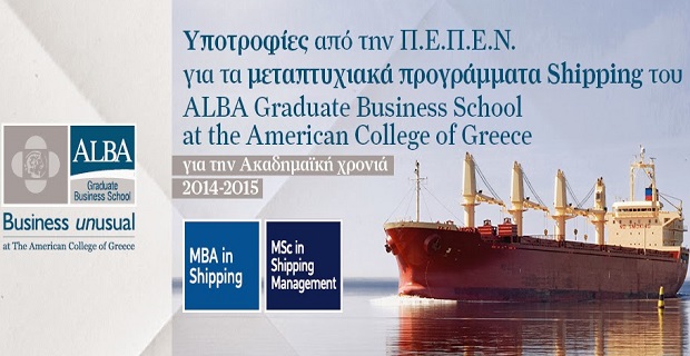 Προκήρυξη υποτροφιών για τα προγράμματα shipping του ALBA Graduate Business School at The American College of Greece σε συνεργασία με την Πανελλήνια Ένωση Πλοιάρχων Ε.Ν. Πάσης Τάξεως.