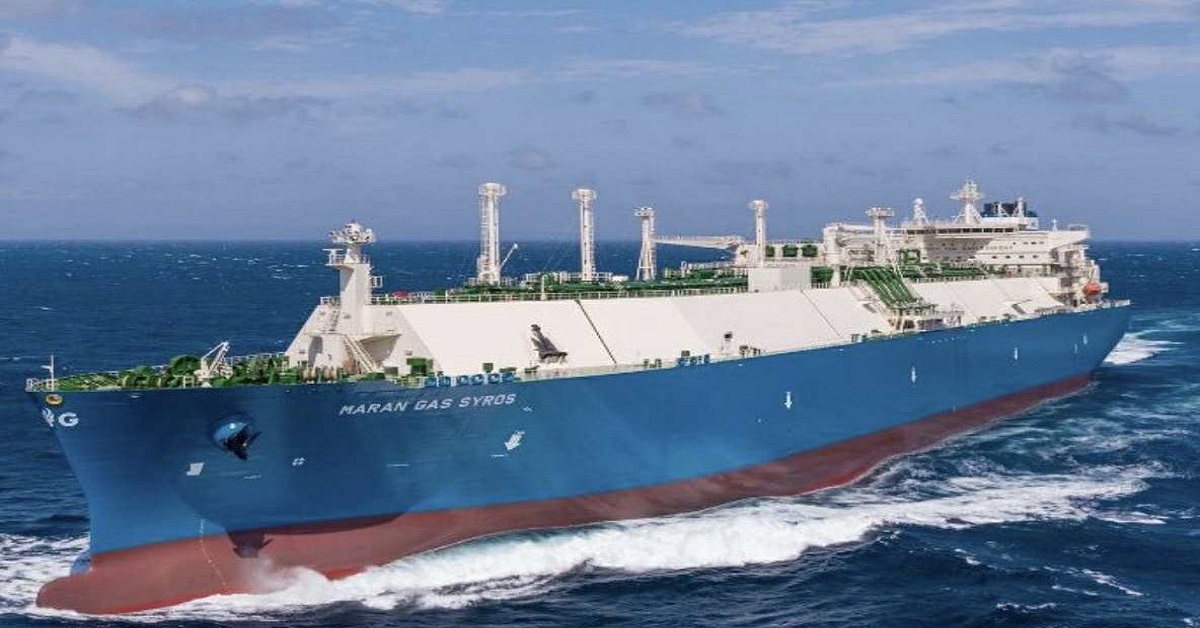 Πρόκειται για το νεότευκτο πλοίο μεταφοράς φυσικού αερίου «Maran Gas Syros», το οποίο ναυπηγήθηκε από τη Hanwha Ocean.