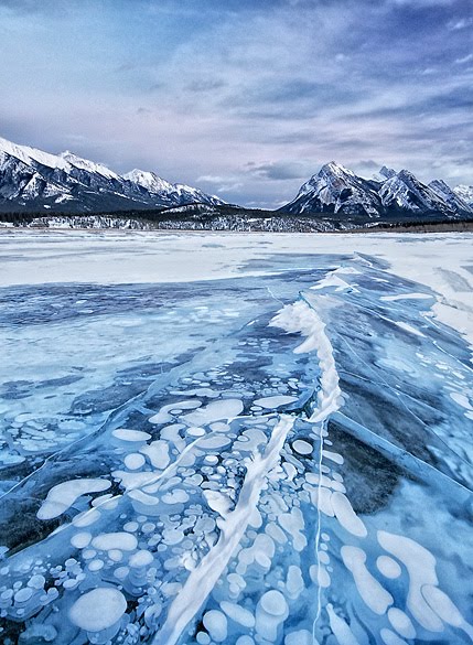 Η τεχνητή λίμνη Abraham Lake βρίσκεται στους πρόποδες της καναδικής οροσειράς Βραχώδη Όρη και αποτελεί ένα από τα πλέον δημοφιλή σημεία ανάμεσα στους φωτογράφους.