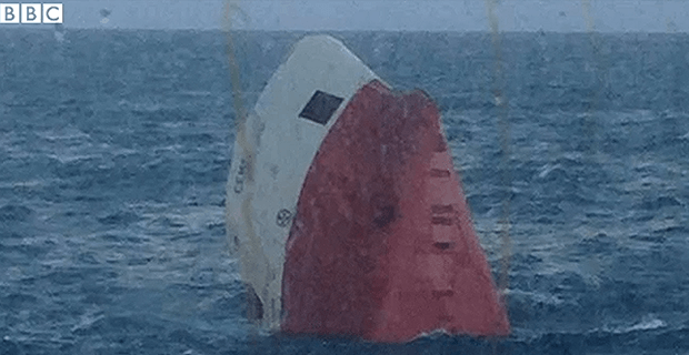 Σύμφωνα με το BBC Σκωτίας, το φορτηγό το οποίο μετέφερε τσιμέντο, βρέθηκε από διερχόμενο πλοίο αναποδογυρισμένο με την πλώρη να επιπλέει!