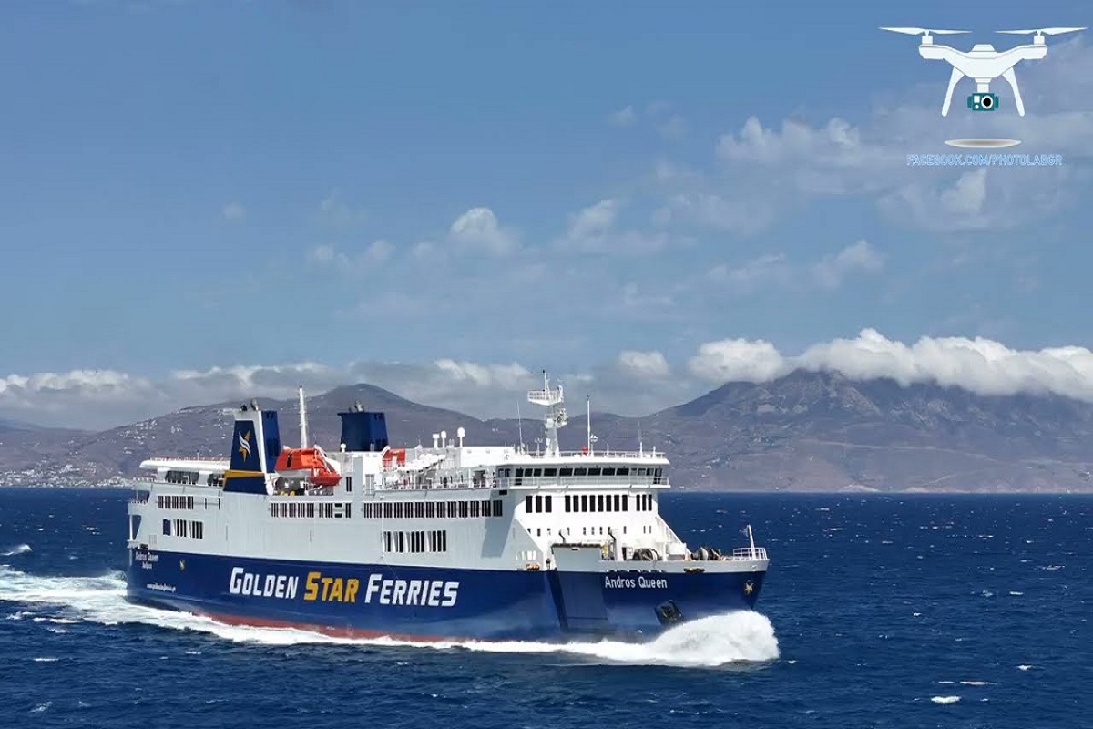 Drone video του επιβλητικού Andros Queen της Golden Star Ferries, κατά τη διάρκεια μιας πρόσφατης άφιξής του στη Μύκονο με μανούβρα από τον cpt. Θανάση Χαλά.