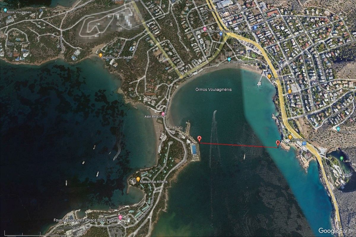 3. Η απαγόρευση διέλευσης, πλοίων, ταχυπλόων, λεμβών, αλιευτικών και οποιοδήποτε άλλου τύπου σκάφους προς αποφυγή ατυχημάτων σε απόσταση τριακοσίων (300) τουλάχιστον μέτρων, από τη θαλάσσια περιοχή που εσωκλείεται από τις ανωτέρω συντεταγμένες και προς την ακτή όπως εμφαίνεται στο επισυναπτόμενο Παράρτημα Α΄, προκειμένου να εξασφαλιστεί η ασφαλής διενέργεια τoυ αγώνα.