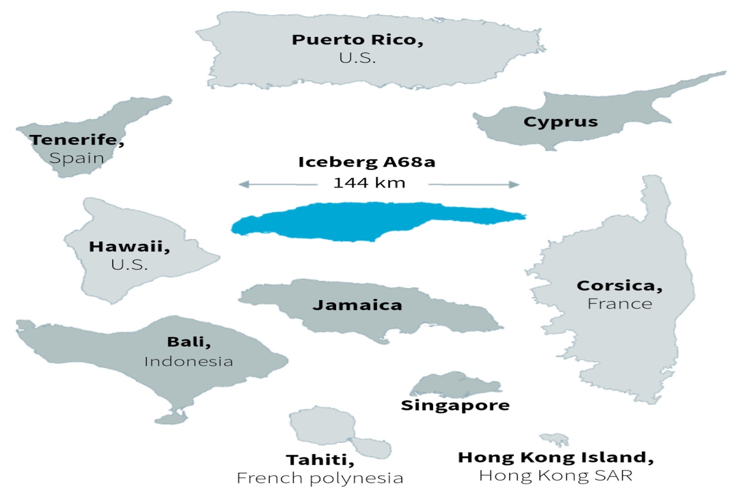 Το παγόβουνο κινείται γρήγορα χάρη σε θαλάσσιο ρεύμα γνωστό ως Κυκλικό Πολικό Μέτωπο Νότιας Ανταρκτικής (SACCF). Το ρεύμα αυτό, που κατευθύνεται προς τον Βορρά, αλλάζει φορά μόλις φθάσει στα αβαθή της Νότιας Γεωργίας, για να μετατοπιστεί προς τα νοτιοανατολικά. Ελπίδες στους επιστήμονες προκαλούν οι καταγραφές των τελευταίων δύο ημερών, στις οποίες το παγόβουνο εμφανίζεται να έχει μετακινηθεί λίγο προς την κατεύθυνση αυτή. Το χειρότερο σενάριο θα ήταν το παγόβουνο να εξοκείλει στα ανοικτά της νήσου, επηρεάζοντας δυσμενώς την ποσότητα γόνου γαρίδας στην περιοχή και υποχρεώνοντας πιγκουίνους και φώκιες να κολυμπούν μεγάλες αποστάσεις για να εντοπίσουν την τροφή τους. Δυστυχώς, η τήξη του παγόβουνου είναι ιδιαίτερα αργή, καθώς το βύθισμά του, που φθάνει τα 200 μέτρα, σημαίνει ότι η βάση του A68a βρίσκεται στα ιδιαίτερα ψυχρά νερά του Νότιου Παγωμένου Ωκεανού.