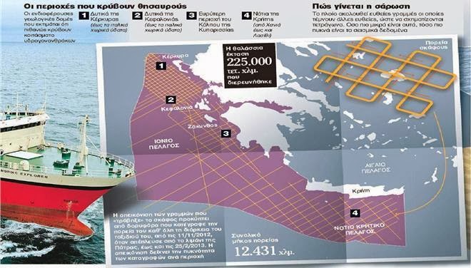 Σύμφωνα με την εφημερίδα μέχρι στιγμής το μεγαλύτερο ενδιαφέρον φαίνεται να παρουσιάζει το Ιόνιο και ειδικά η περιοχή δυτικά της Κέρκυρας έως τα χωρικά ύδατα της Ιταλίας, η αντίστοιχη περιοχή δυτικά της Κεφαλλονιάς και ο κόλπος της Κυπαρισσίας. Στην Κρήτη ενδιαφέρον φαίνεται να παρουσιάζει η νότια πλευρά από το νομό Χανίων έως το νομό Λασιθίου.
