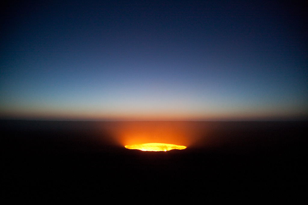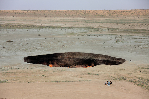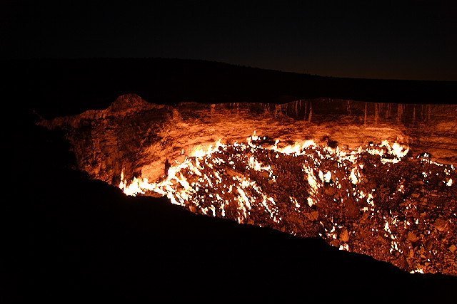 Κανείς δεν τολμούσε να πάει εκεί κάτω, επειδή το σπήλαιο είχε γεμίσει με αέριο. Καθώς η περιοχή γέμισε (επικίνδυνο) φυσικό αέριο που απειλούσε την κατοικημένη περιοχή, αποφασίστηκε να γίνει ανάφλεξη του αερίου, δημιουργώντας αυτό το περίεργο αξιοθέατο γνωστό σαν «η πύλη της κόλασης», ονομασία που μάλλον την αξίζει. Το αέριο καίγεται εδώ και 35 χρόνια δημιουργώντας αυτό το φαινόμενο που προκαλεί περιέργεια αλλά και δέος σε όσους το αντικρίζουν από κοντά! Κανείς δε ξέρει πόσοι τόννοι αερίου έχουν καεί όλα αυτά τα χρόνια αλλά μοιάζει να είναι ατέλειωτο!