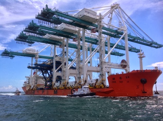 Γερανοί - γίγαντες μεταφέρθηκαν με πλοίο στο Μαϊάμι [φωτο]Οι 4 γερανοί «Super Post-Panamax» παραδόθηκαν στο Μαϊάμι την Δευτέρα. Το λιμάνι του Μαϊάμι προετοιμάζεται για την άφιξη μεγαλύτερων πλοίων, κάτι που είναι αποτέλεσμα της διεύρυνσης της διώρυγας του Παναμά.