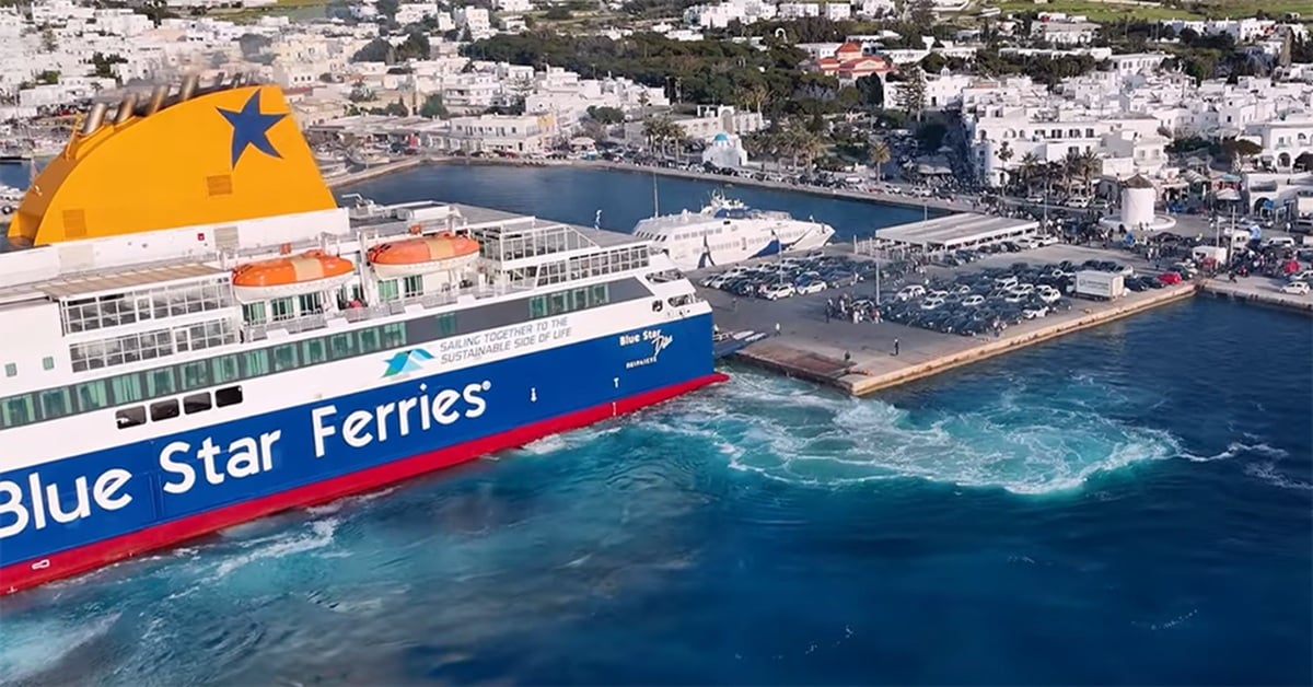 Το Blue Star Delos στην Πάρο εντυπωσιάζει με ένα θεαματικό ρεμέτζο διάρκειας δύο λεπτών στο λιμάνι της Παροικίας, ερχόμενο από Νάξο και Σαντορίνη. Το video της προσέγγισης έχει ήδη τραβήξει τα βλέμματα.