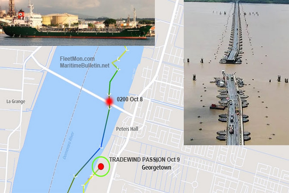 Το δεξαμενόπλοιο TRADEWIND PASSION προσέκρουσε με την πλωτή γέφυρα Demerara Harbour Bridge στον ποταμό Demerara, Georgetown, στη Γουιάνα, στις 8 Οκτωβρίου περίπου στις 0200 τοπική ώρα, ενώ βρισκόταν εν πλω φορτωμένο με προορισμό τον τερματικό σταθμό Guyoil.