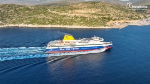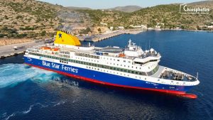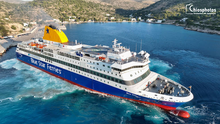 Δεξιοτεχνική μανούβρα και γρήγορο ρεμέτζο του Blue Star Patmos στο λιμάνι Μεστών (video & photos)