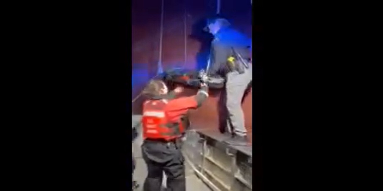 Ο τραυματισμένος άνδρας ασφαλίστηκε προσεκτικά στο φορείο, και ενώ το πλοίο βρισκόταν εν κινήσει, το πλήρωμα τον κατέβασε με σχοινί στο κατάστρωμα του σκάφους, ολοκληρώνοντας το medevac με επιτυχία.