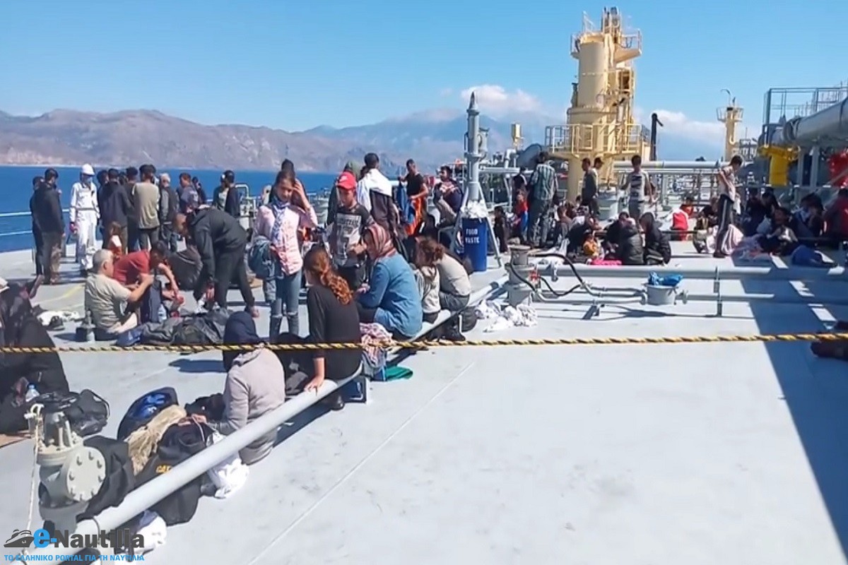 Στο σημείο εκείνο βρισκόταν και το δεξαμενόπλοιο “ARISTΟFANIS” το οποίο περισυνέλεξε τους μετανάστες.
