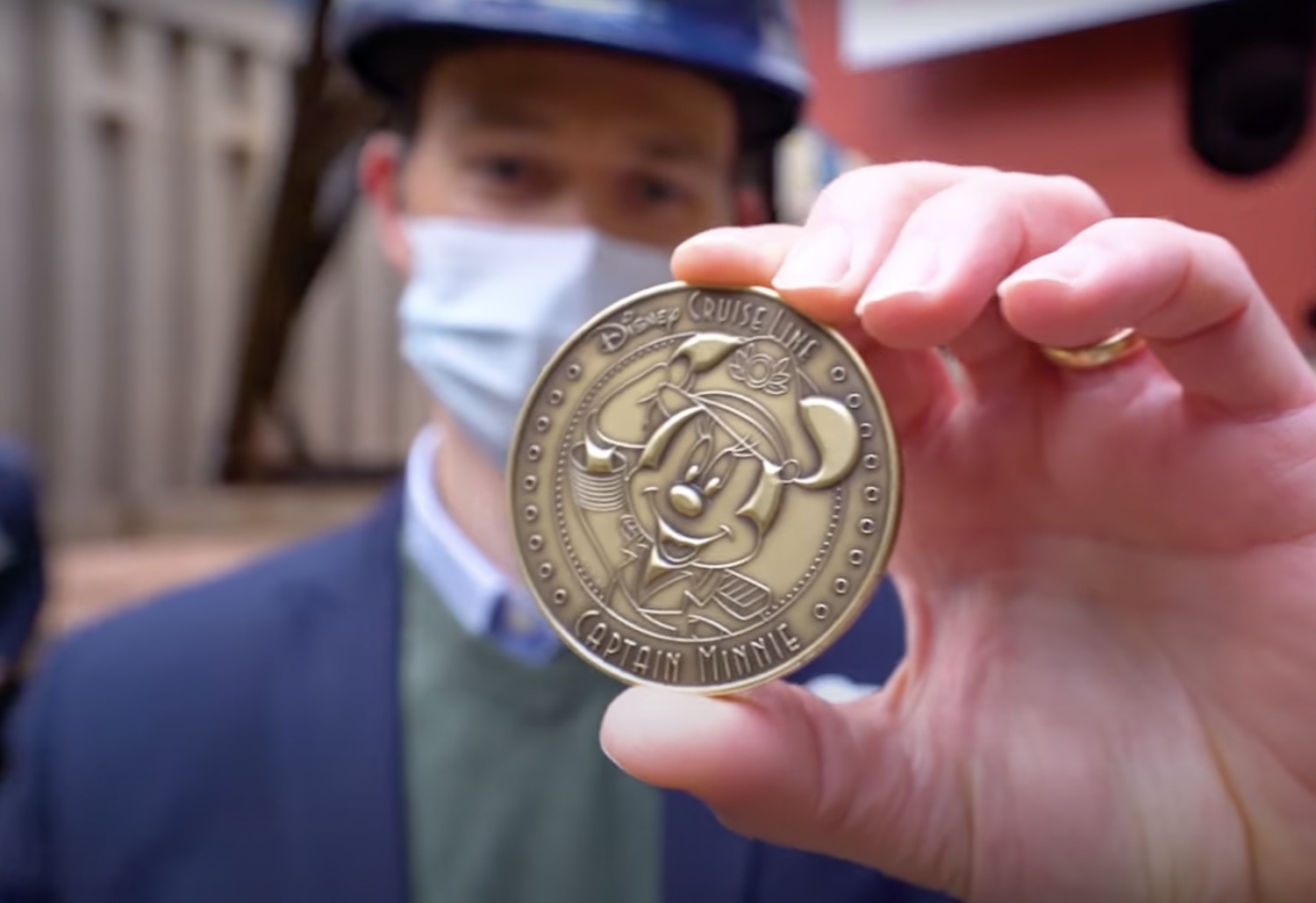 Κατά την τελετή φυσικά τοποθετήθηκε και το τυχερό νόμισμα που θα κοσμεί την πλώρη του πλοίου και απεικονίζει την Minnie Mouse.