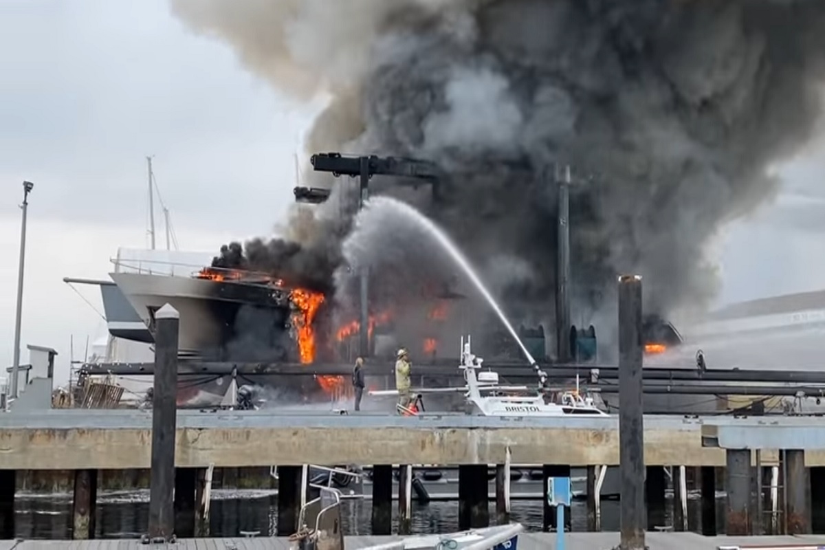 Δύο πολυτελή γιοτ καταστράφηκαν από πυρκαγιά στο Hinkley Yachts Services, στο Νιούπορτ, στο Ρόουντ Άιλαντ, στις 10 Δεκεμβρίου.