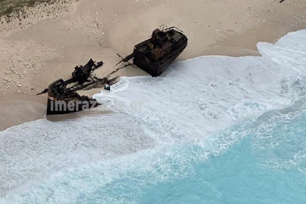 Σοκ προκαλούν οι νέες φωτογραφίες που έρχονται από την παραλία του Ναυαγίου, όπου το κουφάρι του πλοίου “Παναγιώτης” είναι έτοιμο να εξαφανιστεί.
