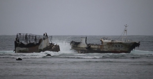 Εγκαταλελειμμένο σκάφος έσπασε στα δύο εν μέσω τυφώνα