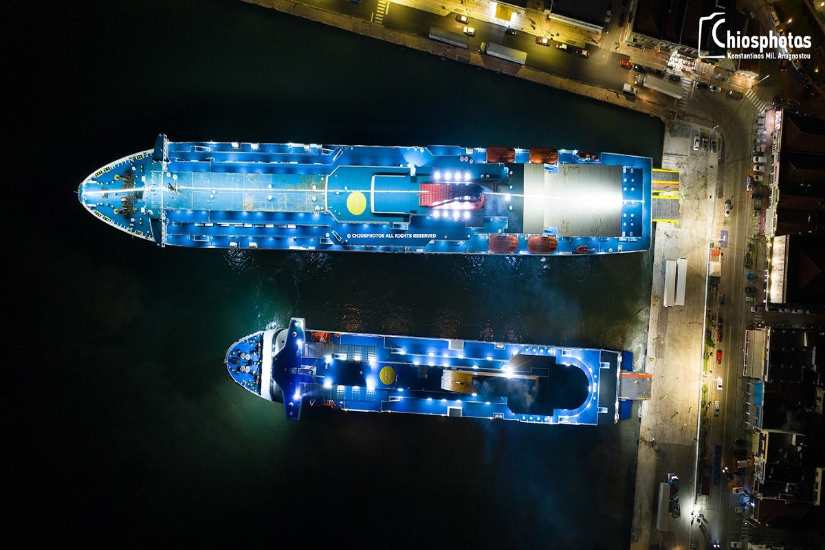Έτσι και σήμερα τα ξημερώματα οι καπετάνιοι του Νήσος Σάμος και Blue Star Myconos, έκαναν διπλό ρεμέτζο με εντυπωσιακούς ελιγμούς στο λιμάνι της Χίου. Τα δύο πλοία πρυμνοδέτησαν δίπλα δίπλα σε απόσταση αναπνοής ξεφορτώνοντας με ασφάλεια επιβάτες και οχήματα.