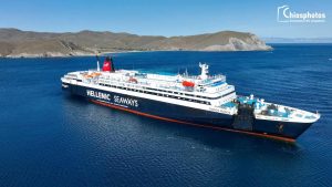 Εντυπωσιακές εικόνες από την άφιξη του Νήσος Ρόδος στα Ψαρά. Το αρχοντοβάπορο της Hellenic Seaways συνδέει το μικρό νησάκι των 350 κατοίκων, τα Ηρωικά Ψαρά, με τον Πειραιά δίνοντας έτσι ζωή σε ένα από τα πιο ιστορικά ακριτικά μας νησιά.