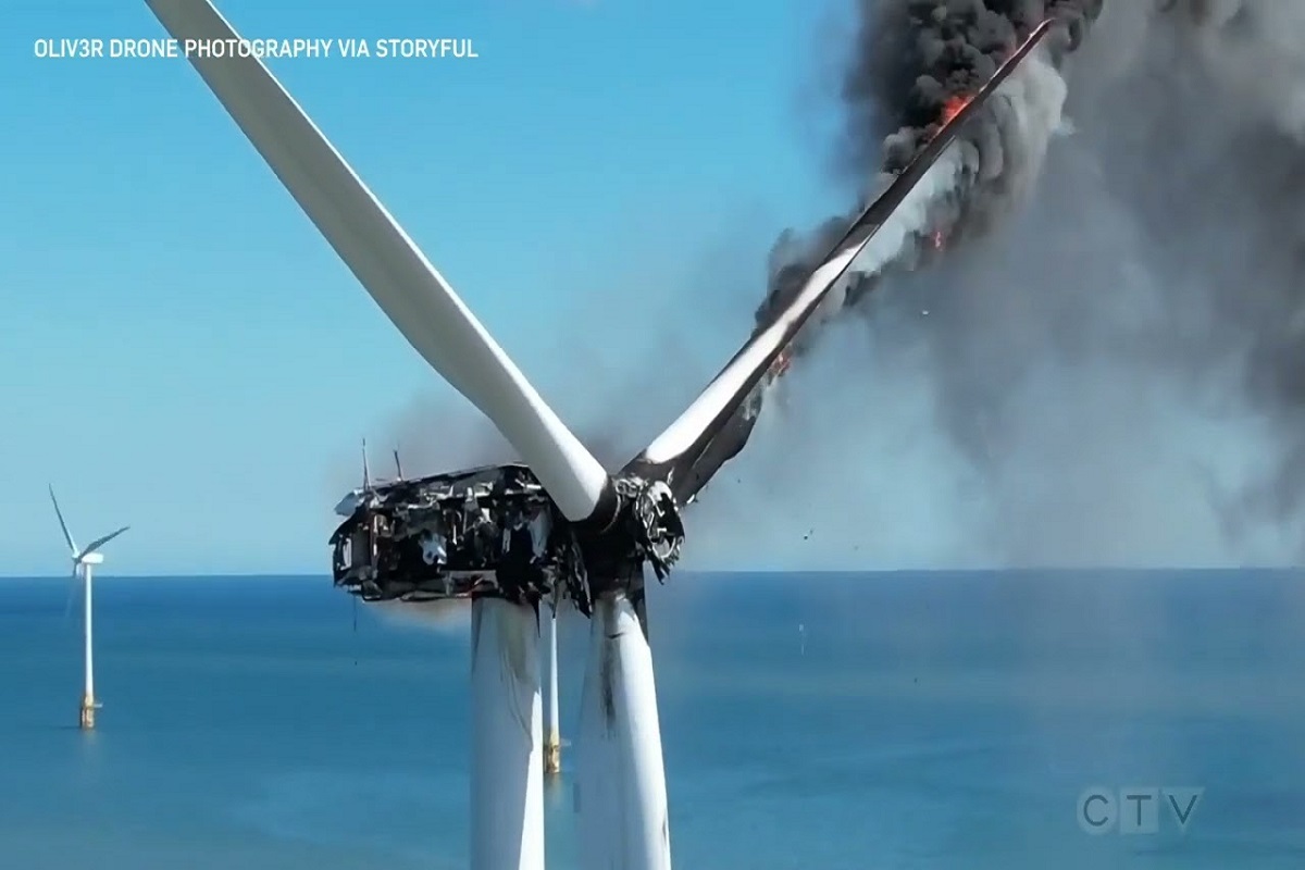 Εντυπωσιακές εικόνες από την πυρκαγιά σε υπεράκτια ανεμογεννήτρια