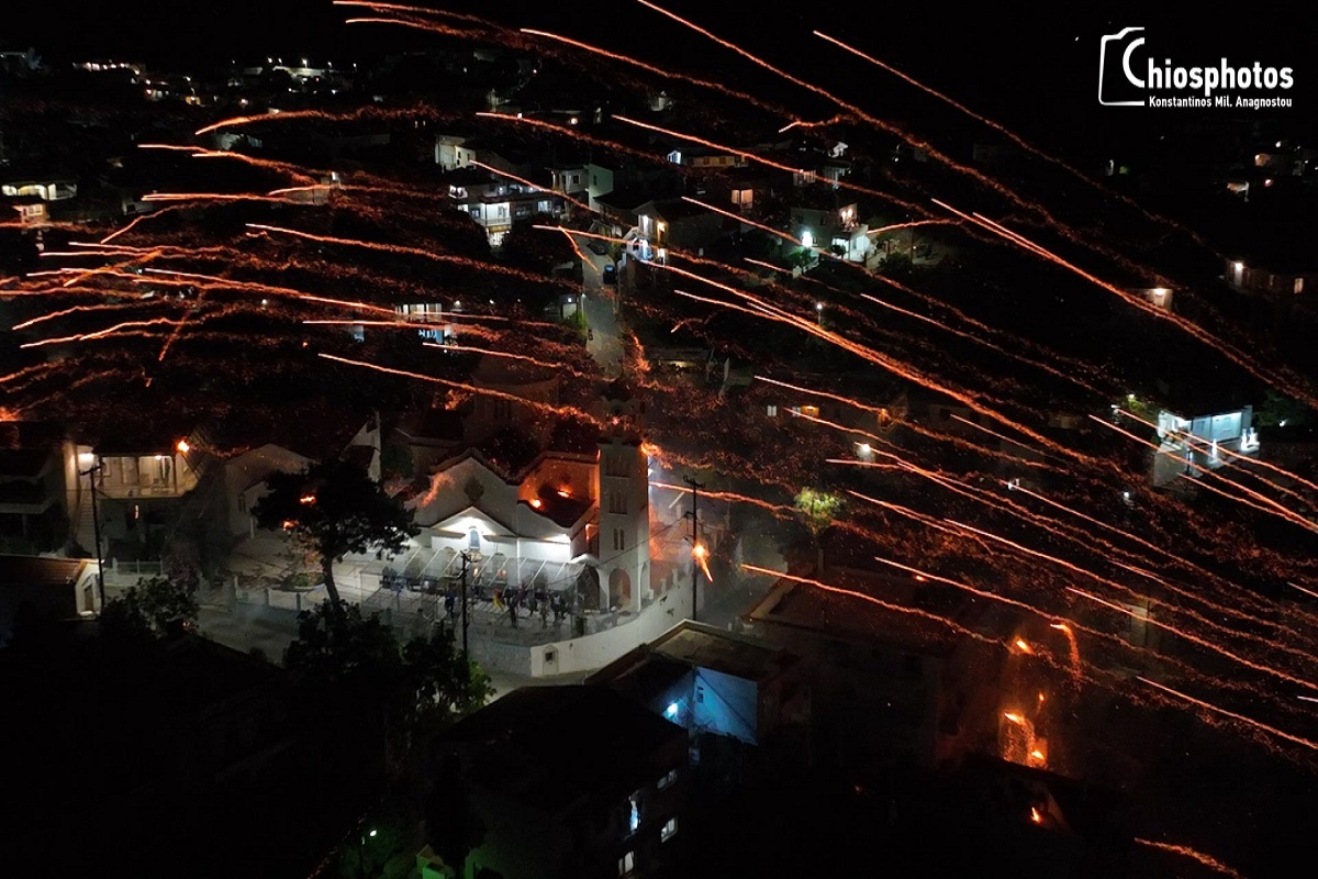 Χιλιάδες ρουκέτες δημιούργησαν ένα εντυπωσιακό υπερθέαμα στο Βροντάδο της Χίου μεταφέροντας το χαρμόσυνο μήνυμα της Ανάστασης.