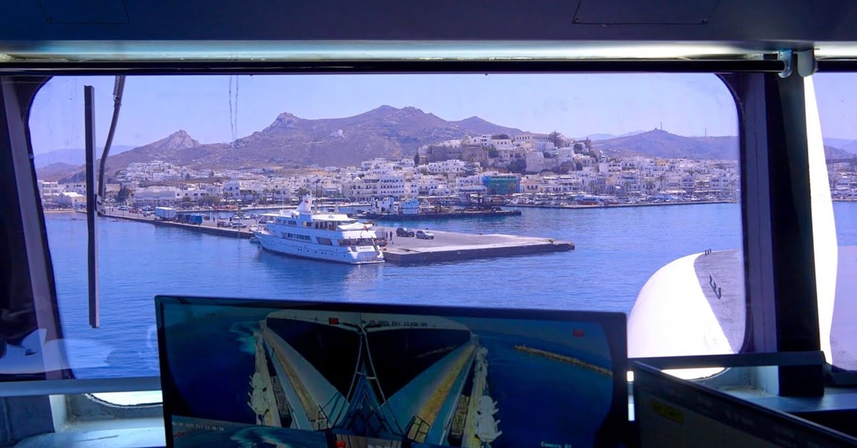 Εντυπωσιακή μανούβρα μέσα από τη Γέφυρα του Champion Jet 3 καταγράφηκε σε video καθώς το ταχύπλοο εισερχόταν στο λιμάνι της Νάξου από Πάρο και Πειραιά. Ο Cpt. Προκόπης Παρλιάρος πραγματοποίησε δεξιόστροφη στροφή και προσέγγισε το λιμάνι με ακρίβεια.