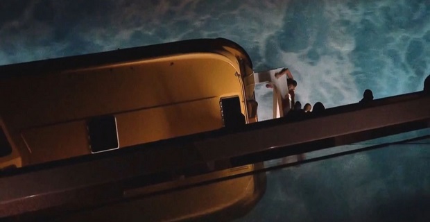 Το βίντεο που γυρίστηκε από έναν επιβάτη σ’ ένα υψηλότερο κατάστρωμα δείχνει τον άνθρωπο αυτό, που τελευταία φορά φορούσε ένα ροζ πουκάμισο και λευκό σορτς, να κρέμεται από μια σωσίβια λέμβο μέχρι τη στιγμή που χάνει το πιάσιμο του και βυθίζεται στο νερό, ενώ οι επιβάτες και τα μέλη του πληρώματος παρακολουθούν έντρομοι.