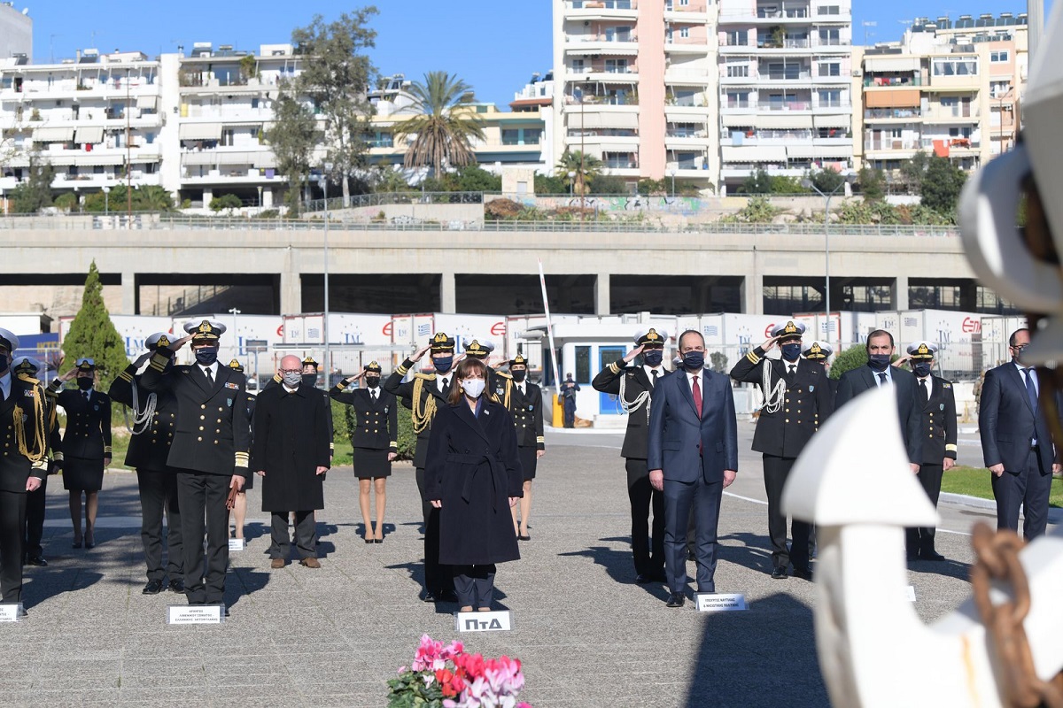 Από την πλευρά του, ο Αρχηγός του Λιμενικού Σώματος – Ελληνικής Ακτοφυλακής, Αντιναύαρχος Λ.Σ. Θεόδωρος Κλιάρης, σημείωσε: «Αποτελεί εξαιρετική τιμή και ιδιαίτερη χαρά να σας υποδεχόμαστε σήμερα στο Αρχηγείο Λιμενικού Σώματος-Ελληνικής Ακτοφυλακής. Η παρουσία σας για μας έχει ιδιαίτερη συμβολική αξία και σημασία, καθώς αποτελεί έμπρακτη αναγνώριση του έργου που προσφέρει το Λιμενικό Σώμα-Ελληνική Ακτοφυλακή στην Κοινωνία και στην Πατρίδα μας» και πρόσθεσε: