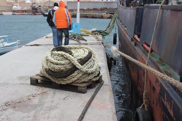 Από τη μανία των ανέμων, νωρίς το πρωί της Τετάρτης έσπασε ο μπροστινός κάβος του Sheyang με συνέπεια να δημιουργηθεί κίνδυνος να παρασυρθεί το πλοίο κάτι το οποίο ευτυχώς δε συνέβη.