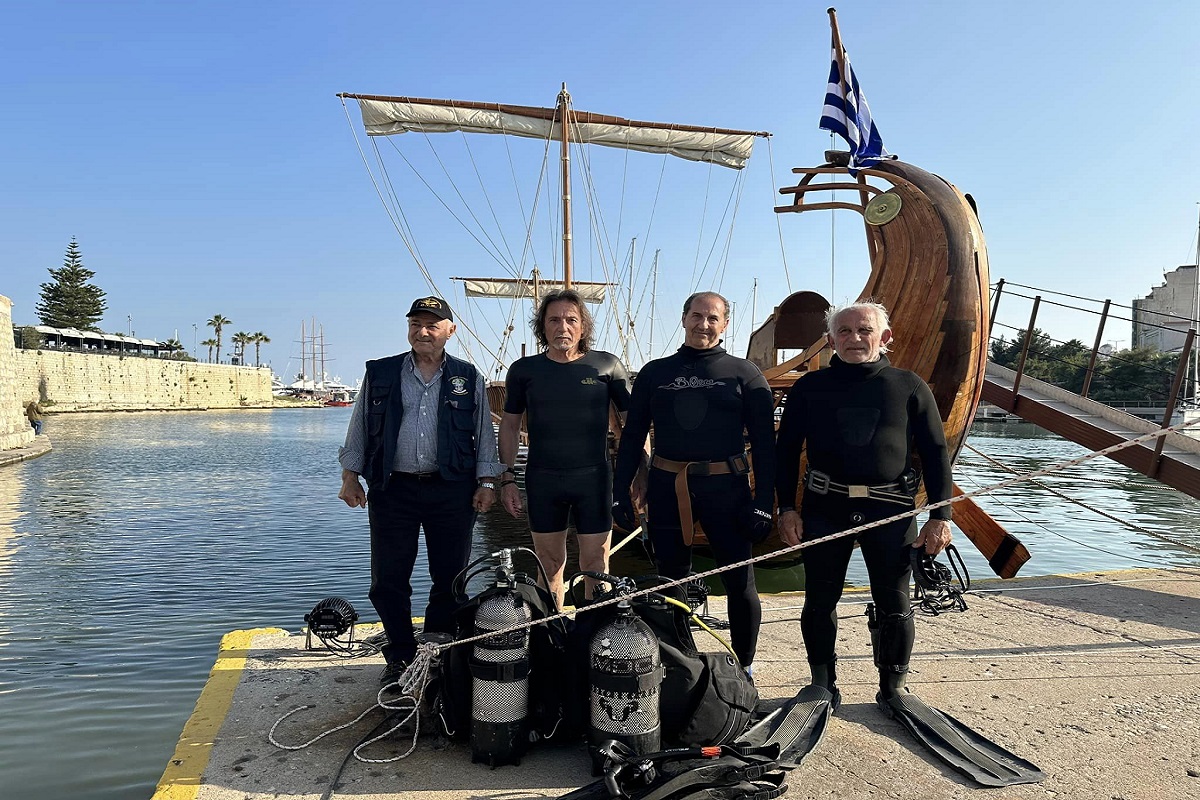 Οι δύτες βούτηξαν στο σημείο που έχει καταπλεύσει η τριήρης «Ολυμπιάς» του Πολεμικού Ναυτικού, όπου και καθάρισαν τον βυθό, σε μια ακόμη περιβαλλοντική δράση του Συνδέσμου σε συνεργασία με τον Δήμο Πειραιά.