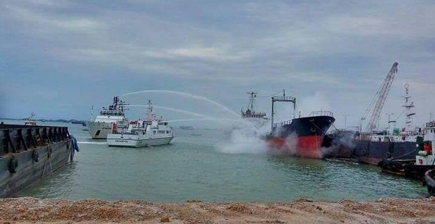 Η ινδονησιακή Ακτοφυλακή κατέφθασε στο σημείο με πυροσβεστικά σκάφη. Τέσσερα πυροσβεστικά οχήματα από την τοπική αυτοδιοίκηση προσχώρησαν στην επιχείρηση και κατάφεραν να σβήσουν τη φωτιά μέσα σε σύντομο χρονικό διάστημα.