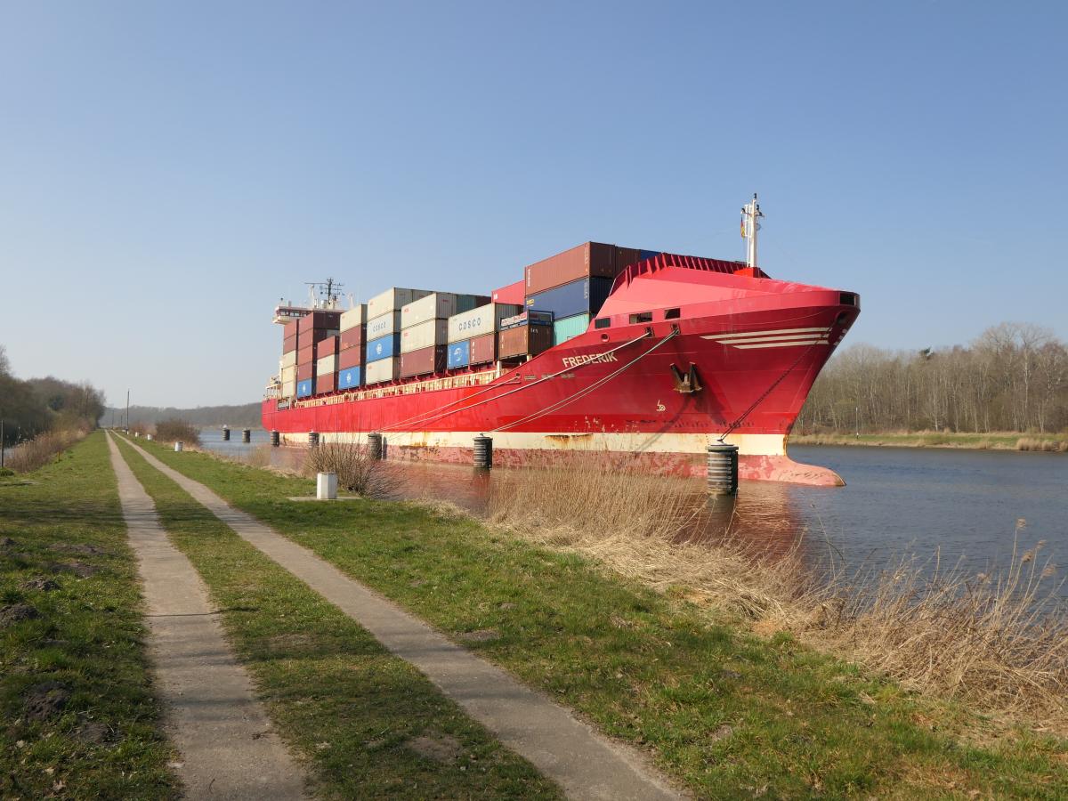 Το φορτηγό πλοίο Frederick μπλόκαρε το κανάλι του Κίελου μετά από βλάβη που υπέστη στην κύρια μηχανή του. Μετά από μέρες προσπαθειών για την επισκευή της βλάβης, ρυμουλκήθηκε στην ανατολική ακτή του Κιέλου για μια πιο ενδελεχή έρευνα.