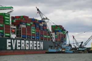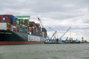 Φωτογραφίες από τη διαδικασία εκφόρτωσης των κοντέινερ του Ever Forward