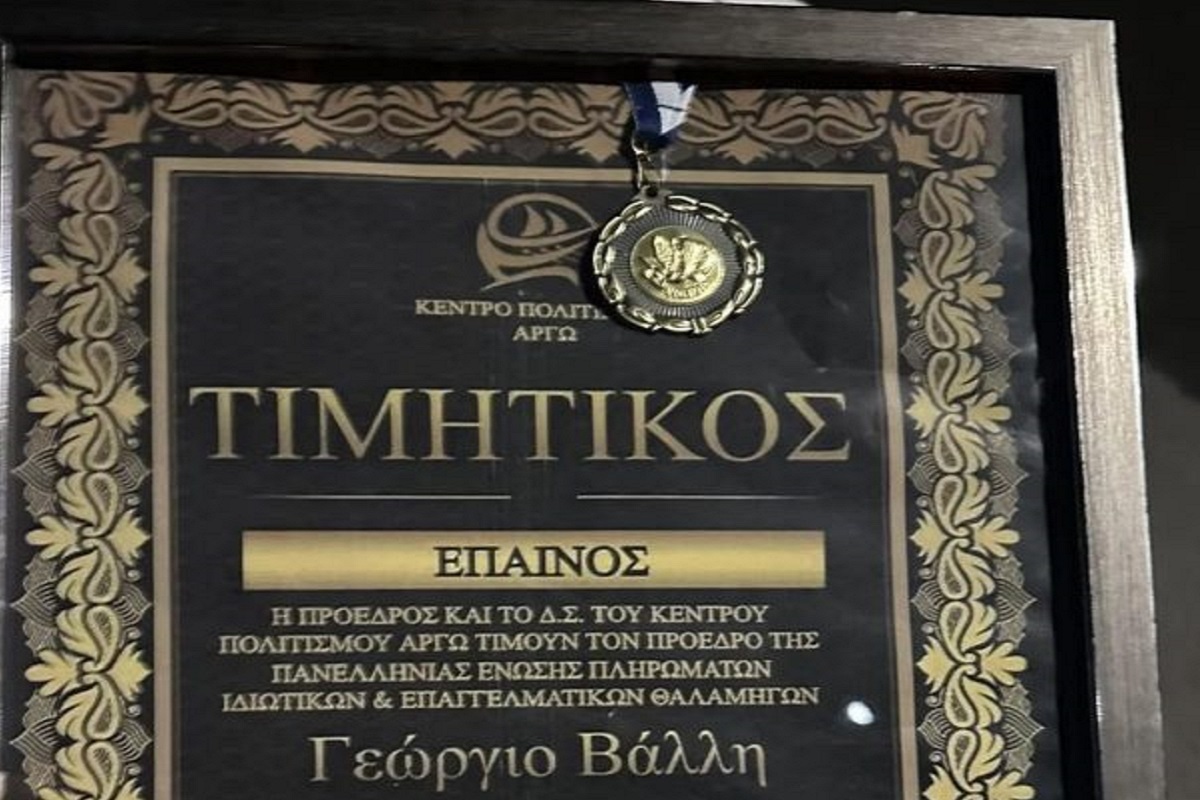 Με τιμητική πλακέτα βραβεύτηκε το Σάββατο 15/6 ο cpt. Γιώργος Βάλλης, Πρόεδρος της Πανελλήνιας Ένωσης Πληρωμάτων Ιδιωτικών και Επαγγελματικών Θαλαμηγών.