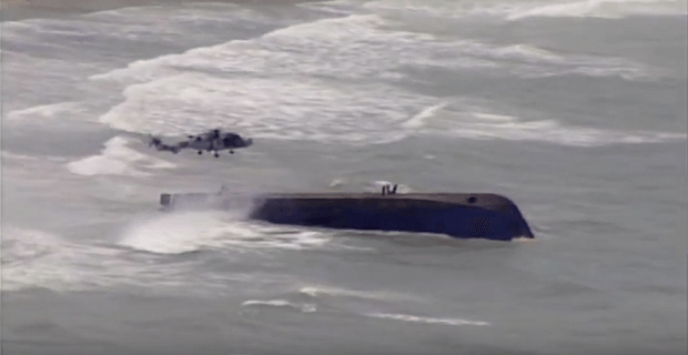 Ένα βίντεο της διάσωσης τραβήχτηκε από ένα αεροπλάνο αναζήτησης της Ακτοφυλακής: