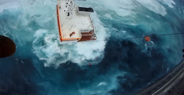 Στις δραματικές εικόνες, που αποδεικνύουν ότι οι εννέα άντρες σώθηκαν κυριολεκτικά την τελευταία στιγμή, πριν η μανιασμένη θάλασσα «καταπιεί» ολόκληρο το καράβι, φαίνεται η προσπάθεια των αντρών του Πολεμικού Ναυτικού να τους διασώσουν. Οι εικόνες δείχνουν τα φουρτουνιασμένα κύματα να έχουν σκεπάσει σχεδόν ολόκληρο το πλοίο. Μόνο η γέφυρα παραμένει πάνω από την επιφάνεια, ενώ στο κατάστρωμα έχουν ανέβει οι ναυτικοί φορώντας τα πορτοκαλί σωσίβια και περιμένουν να σωθούν.