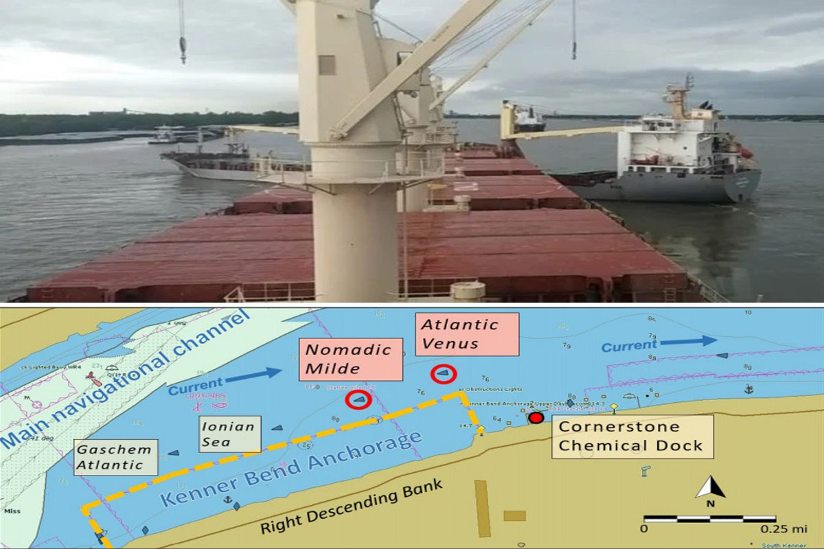 Το Marine Accident Brief 21/15 περιγράφει λεπτομερώς την έρευνα του National Transportation Safety Board Marine Accident Brief (NTSB) για το ατύχημα που έγινε στις 8 Μαΐου 2020, όταν το αγκυροβολημένο φορτηγό πλοίο μεταφοράς γενικού φορτίου Nomadic Milde συγκρούστηκε με το αγκυροβολημένο πλοίο μεταφοράς χύδην φορτίου Atlantic Venus. Στη συνέχεια, το Nomadic Milde χτύπησε μια κοντινή προβλήτα χημικών και προσάραξε σε αβαθή ύδατα στις όχθες του ποταμού. Το ατύχημα είχε ως αποτέλεσμα να υπάρξουν ζημιές περίπου 16,9 εκατομμυρίων δολαρίων. Δεν υπήρξαν τραυματισμοί.