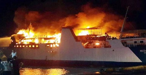 Η εκδήλωση της πυρκαγιάς έγινε το βράδυ της 15ης Ιούνη 2017. Αξιωματικοί και πλήρωμα αντιμετώπισαν την κατάσταση με απόλυτη ψυχραιμία και νηφαλιότητα. Οργάνωσαν και ενήργησαν σύμφωνα με τα προβλεπόμενα καθήκοντά τους όπως αυτά ορίζονται από την διαίρεση του πληρώματος στην περίπτωση πυρκαγιάς. Οι άνδρες του πληρώματος που είχαν την ευθύνη της διαίρεσης στην πυρόσβεση κινήθηκαν άμεσα και ταχύτατα στο σημείο της πυρκαγιάς, κλείστηκαν, σφραγίστηκαν και απομονώθηκαν τα σημεία τα οποία μπορούν να δημιουργήσουν κινδύνους για την ανεξέλεγκτη μετάδοση της φωτιάς στα υπόλοιπα τμήματα του πλοίου. Στην συνέχεια κρίθηκε ότι πρέπει να προχωρήσει στην εγκατάλειψη το μεγαλύτερο μέρος του πληρώματος και με τον τρόπο αυτό οργανώθηκε η εγκατάλειψη των 16 μελών του πληρώματος και των 2 οδηγών που επέβαιναν στο πλοίο.
