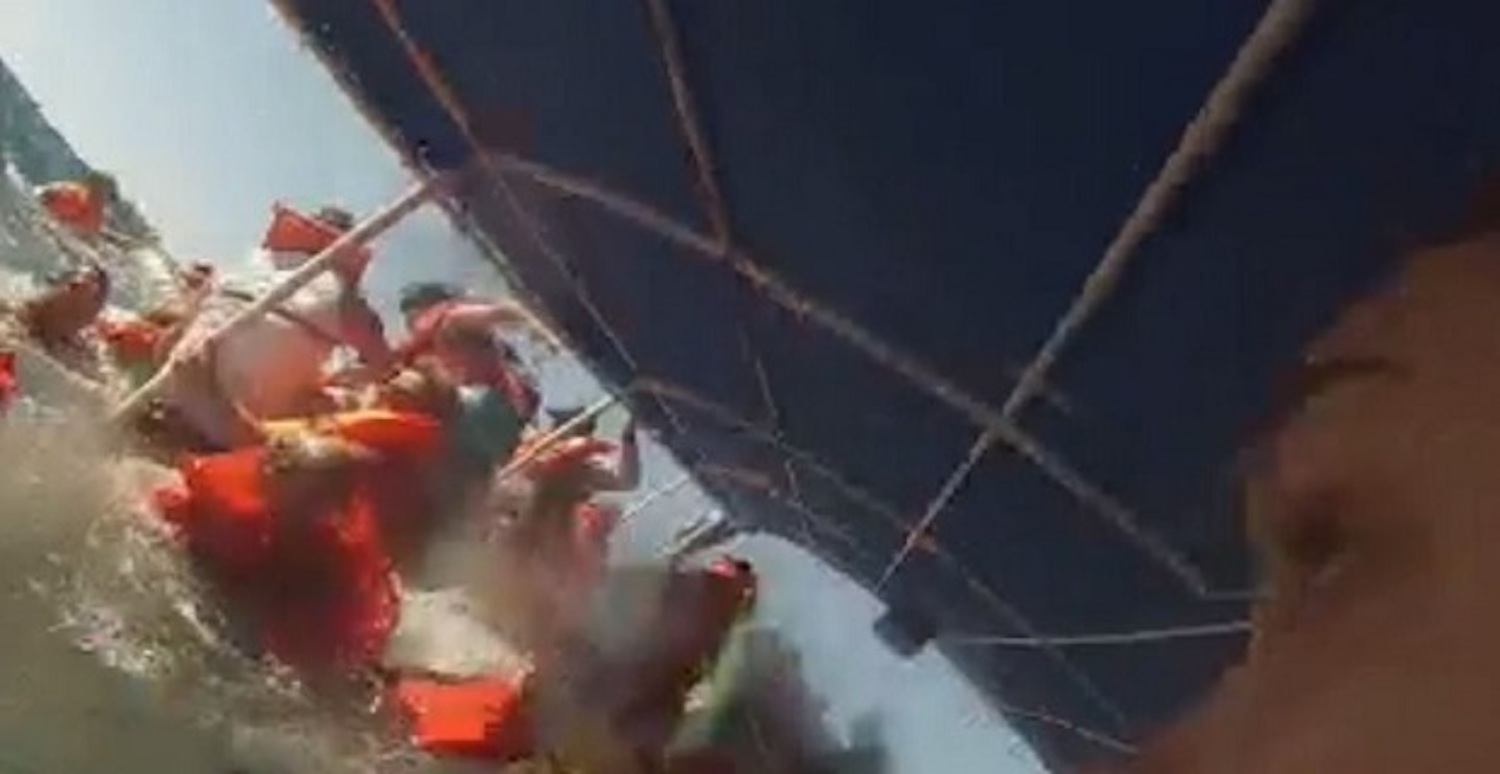 Στο υλικό που έχει καταγραφεί με Go Pro Camera κάμερα από την 21χρονη Alexis Esneaul φαίνονται οι επιβάτες να έχουν πιαστεί από το ψηλότερο στέγαστρο του καταστρώματος καθώς το καταμαράν βυθίζεται και έπειτα να περιμένουν για τη διάσωση τους, καθώς τα πτώματα των νεκρών συνεπιβατών τους επιπλέουν δίπλα τους.