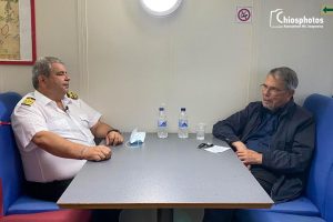 Αφού λοιπόν μας περιποιήθηκε με φαγητό και καφέ ξεκινήσαμε να καταγράφουμε τη διαδρομή του. Αν και μικρός σε ηλικία ο καπετάν Μάρκος είχε πολλά να μας πει για τη ζωή του και τα υπερατλαντικά ταξίδια του. Ως γνήσιος Βρονταδούσης από μικρός είχε αποφασίσει να γίνει ναυτικός ακολουθώντας την παράδοση του τόπου. Τα τελευταία 7 χρόνια είχε αποφασίσει να αφήσει την ποντοπόρο ναυτιλία και να έρθει στη γραμμή Χίο-Ψαρά για να είναι κοντά στην οικογένεια του.