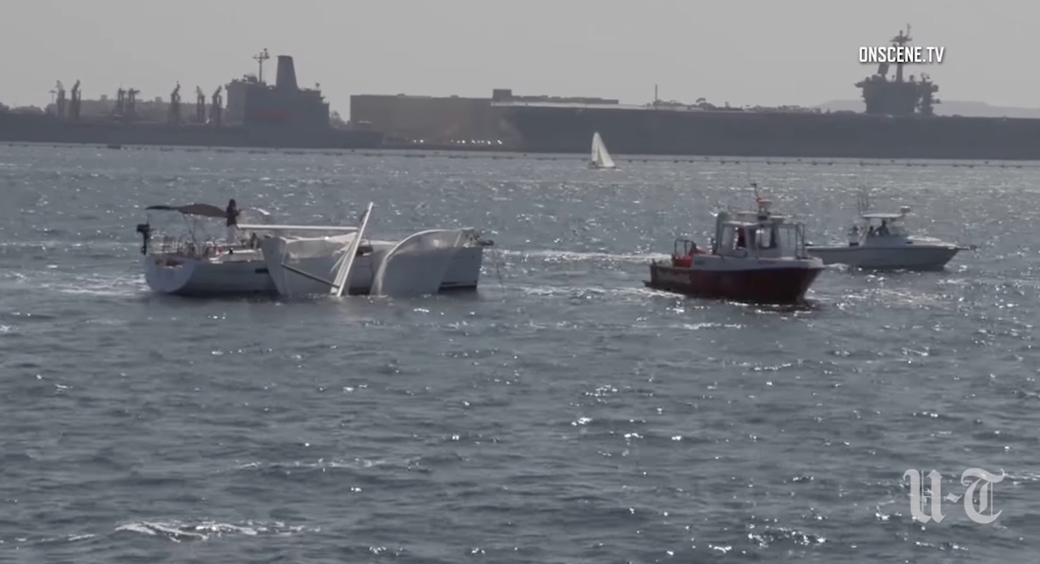 Ιστιοφόρο χάνει το ιστίο του μετά από χτύπημα στο πολεμικό πλοίο USS Midway (Video)