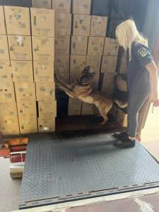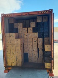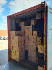 Πρωινές ώρες σήμερα και κατόπιν ένδειξης τελωνειακού σκύλου ανίχνευσης καπνικών προϊόντων Κ9, στελέχη της Διεύθυνσης Δίωξης Ναρκωτικών και Λαθρεμπορίου του Αρχηγείου Λ.Σ.-ΕΛ.ΑΚΤ., από κοινού με στελέχη του Κεντρικού Λιμεναρχείου Πειραιά και τελωνειακούς υπαλλήλους του Τμήματος Δίωξης Λαθρεμπορίου του Γ΄ Τελωνείου Πειραιά, προέβησαν στην αποσφράγιση και στον καθολικό έλεγχο του ανωτέρω εμπορευματοκιβωτίου, όπου βρέθηκαν και κατασχέθηκαν συνολικά πεντακόσια σαράντα οκτώ χιλιάδες (548.000) πακέτα τσιγάρων με είκοσι τσιγάρα έκαστο, που αντιστοιχούν σε δέκα εκατομμύρια εννιακόσια εξήντα χιλιάδες (10.960.000) τσιγάρα.