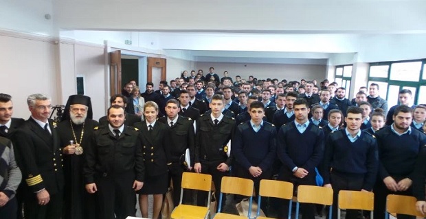 Προσκεκλημένος του Διοικητή της Ακαδημίας Εμπορικού Ναυτικού Σύρου, Πλοιάρχου Λ.Σ. κ. Νικολάου Πολέμη, ο Σεβασμιώτατος κ. Δωρόθεος Β΄ ευλόγησε την πρωτοχρονιάτικη πίτα της Σχολής στην επιλεγόμενη αίθουσα, «Γέφυρα».