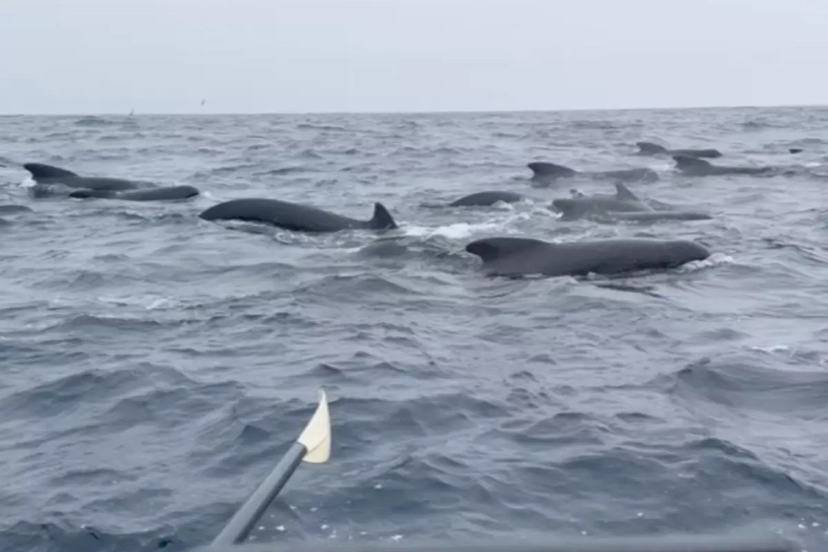 Κωπηλάτης περικυκλώνεται από εκατοντάδες φάλαινες στον Ατλαντικό (video)