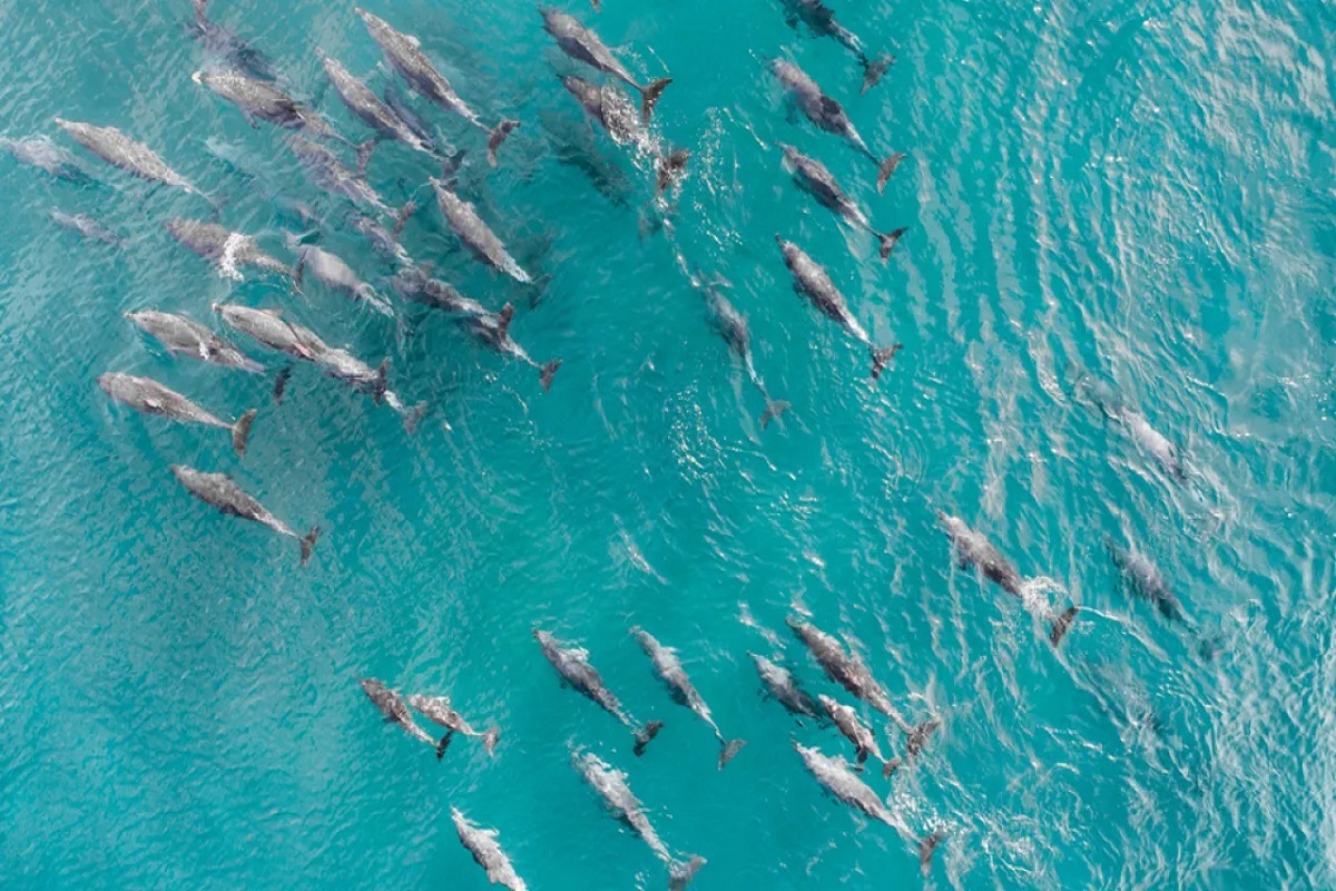 Ένα πολύ μεγάλο κοπάδι από δελφίνια έδωσε… σόου στα γαλανά νερά του Νότιου Κρητικού Πελάγους και πιο συγκεκριμένα στην θαλάσσια περιοχή ανάμεσα σε Αγία Ρούμελη και Γαύδο, συνοδεύοντας το πλοίο.