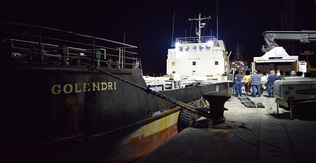 Πρώτες πρωινές ώρες της 15-06-2017 το Περιπολικό Πλοίο Ανοικτής Θαλάσσης του Λιμενικού Σώματος ΠΑΘ 090 εντόπισε το Φ/Γ πλοίο “GOLENDRI”, σημαίας Τανζανίας, στη θαλάσσια περιοχή νότια της Κρήτης, να πλέει χωρίς να έχει σε λειτουργία τα φώτα ναυσιπλοΐας, ούτε και το αυτόματο σύστημα εντοπισμού (A.I.S.). Άμεσα και υπό τον συντονισμό της Διεύθυνσης Δίωξης Ναρκωτικών και Λαθρεμπορίου το Φ/Γ “GOLENDRI” τέθηκε σε διακριτική παρακολούθηση. Βραδινές ώρες της ίδιας ημέρας, το εν λόγω πλοίο σταμάτησε σε απόσταση 1,5 ν.μ. από τις ακτές των Σφακίων Κρήτης. Ταυτόχρονα, μέσω της κάμερας θερμικής απεικόνισης και της συσκευής ραντάρ του Π.Α.Θ. 090, εντοπίστηκε ταχύπλοο σκάφος να κινείται με μεγάλη ταχύτητα προς το Φ/Γ “GOLENDRI”. Το ταχύπλοο έδεσε δίπλα στο “GOLENDRI” και ξεκίνησε μεταφόρτωση χαρτοκιβωτίων με τσιγάρα. Παράλληλα εντοπίστηκαν τέσσερα (04) φορτηγά οχήματα στη ξηρά, στα οποία επρόκειτο να μεταφορτωθούν τα λαθραία τσιγάρα.