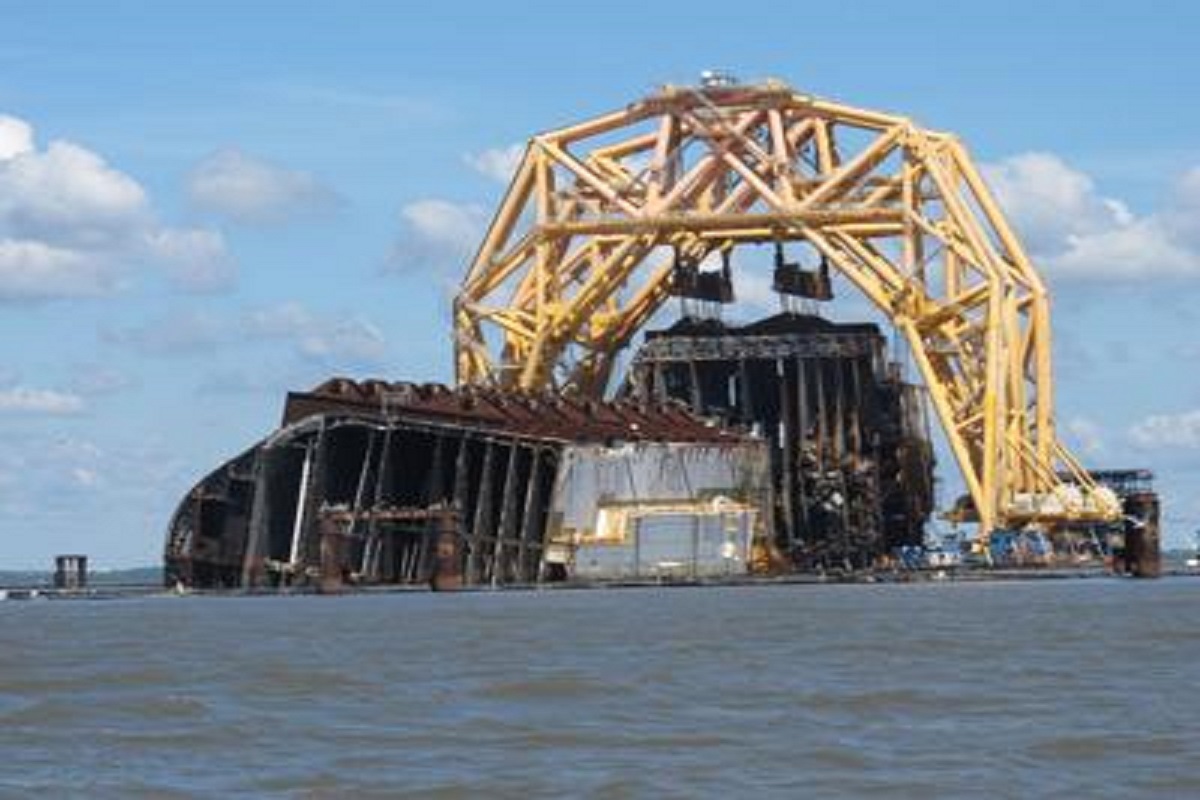 Τον Νοέμβριο, τα συνεργεία αποσυναρμολόγησης είχαν αρχίσει να εργάζονται για την απομάκρυνση του πλοίου κόβοντας το σε οκτώ τεράστια κομμάτια και φορτώνοντας τα σε φορτηγίδες.