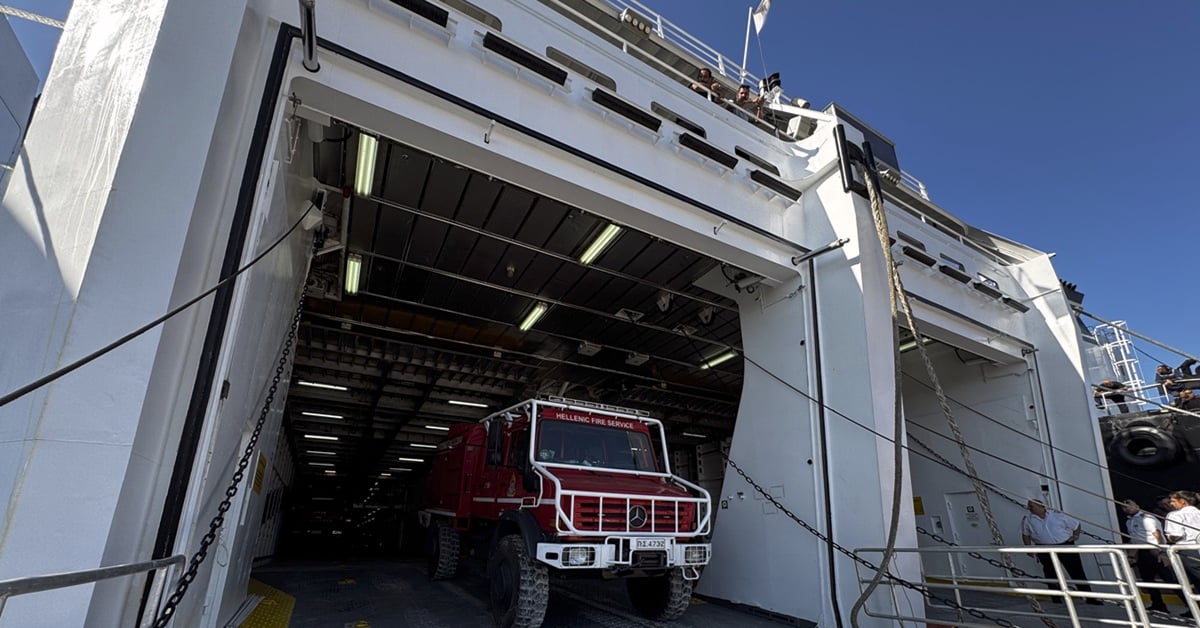 Μεταφορά πυροσβεστικών δυνάμεων από τη Seajets στη Χίο πραγματοποιήθηκε το απόγευμα της Κυριακής, με το ταχύπλοο SUPERRUNNERJET 2 να αποπλέει από τη Δραπετσώνα, μεταφέροντας ισχυρές δυνάμεις και οχήματα για την αντιμετώπιση της μεγάλης πυρκαγιάς στο νησί.
