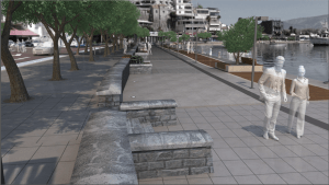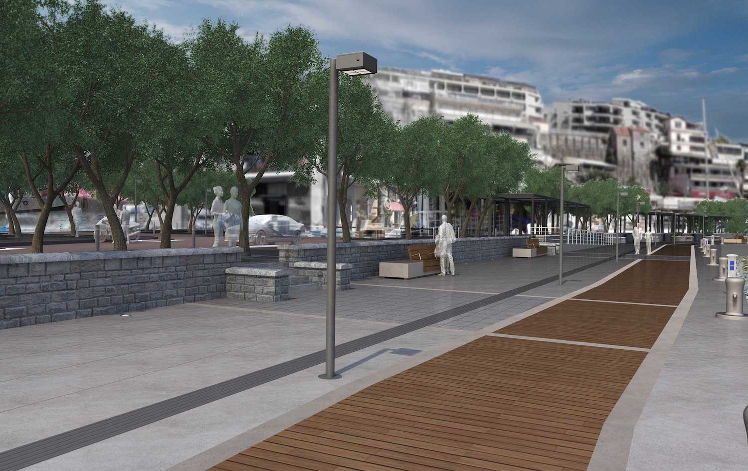 Προβλέπει ελεύθερο χώρο περιπάτου στο θαλάσσιο μέτωπο για τους επισκέπτες, μετακίνηση των τραπεζοκαθισμάτων σε νέο οριοθετημένο σημείο των κοινόχρηστων χώρων, δρόμο ήπιας κυκλοφορίας 3,5 μέτρων, όπου θα απαγορεύεται η στάθμευση, ανακατασκευές των πεζοδρομίων και των πλακοστρώσεων, καθώς και ασφαλτικά έργα και καθορισμό νέων χώρων στάθμευσης για δημότες και επισκέπτες. Επίσης, αντικατάσταση όλων των φωτιστικών σωμάτων με νέας τεχνολογίας, νέο σύστημα διαχείρισης των απορριμμάτων, αναβάθμιση του αποχετευτικού και του δικτύου ομβρίων στη συγκεκριμένη περιοχή.