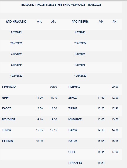 Έναρξη δρομολογίων από ΗΡΑΚΛΕΙΟ την Κυριακή 03/07 και από ΠΕΙΡΑΙΑ τη Δευτέρα 04/07/2022.