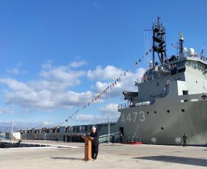 Τέλος, ο Υπουργός Εθνικής Άμυνας κ. Νίκος Παναγιωτόπουλος αναφέρθηκε στη συνολική προσφορά του κ. Λασκαρίδη προς το Πολεμικό Ναυτικό. «Η απόκτηση των τριών αυτών πλοίων σε τόσο σύντομο χρονικό διάστημα είναι αποτέλεσμα της πολύχρονης προσφοράς του κ. Λασκαρίδη τόσο στο ΠΝ όσο και στην πατρίδα γενικότερα. Η συνεισφορά και το έργο του είναι μεγίστης σπουδαιότητας, με τη συνεχή και άοκνη υλική και ηθική υποστήριξη, που -εκτός από τα πλοία- περιλαμβάνει οπλικά συστήματα και ανταλλακτικά. Ο κ. Παναγιώτης Λασκαρίδης αποδεικνύει συνεχώς τόσο την αγάπη του για το ΠΝ όσο και τους άρρηκτους δεσμούς του εμπορικού με το Πολεμικό Ναυτικό. Τα τρία πλοία «από το περασμένο έτος έχουν ενταχθεί πλήρως επιχειρησιακά στον Στόλο, αξιοποιούμενα στο έπακρο από τους επιτελείς και τα πληρώματα, όπως αποδείχθηκε περίτρανα στο 2ο εξάμηνο του 2020 στην περιοχή της Ανατολικής Μεσογείου».